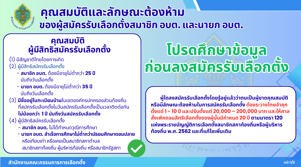 คุณสมบัติและลักษณะต้องห้าม ของผู้สมัครรับเลือกตั้ง...