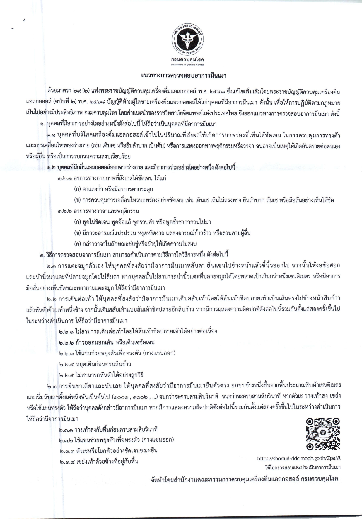 ประชาสัมพันธ์ แนวทางการตรวจสอบอาการมึนเมา