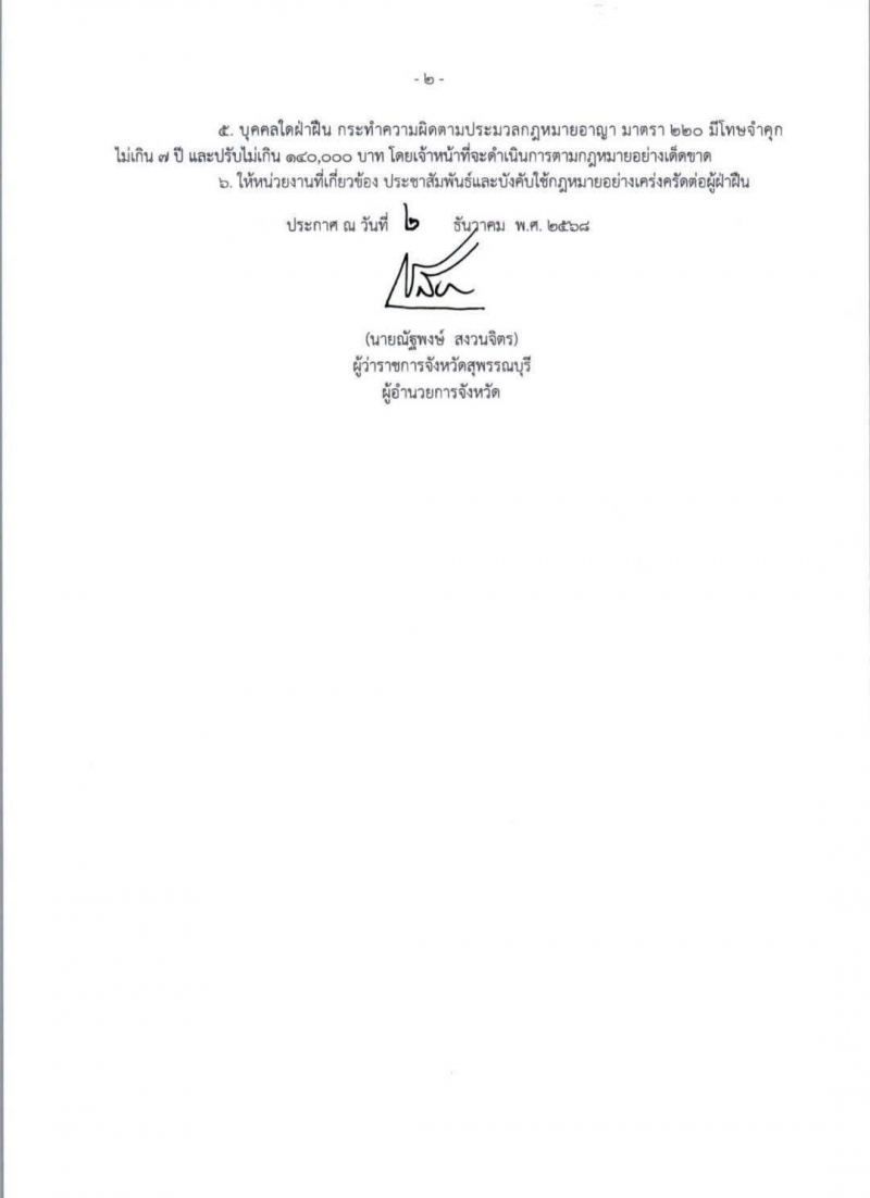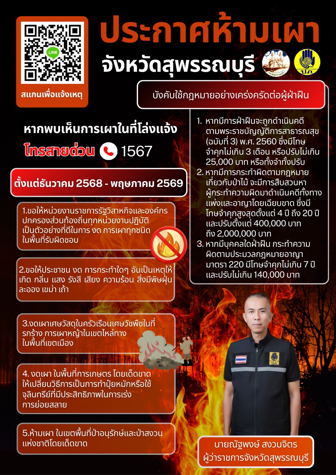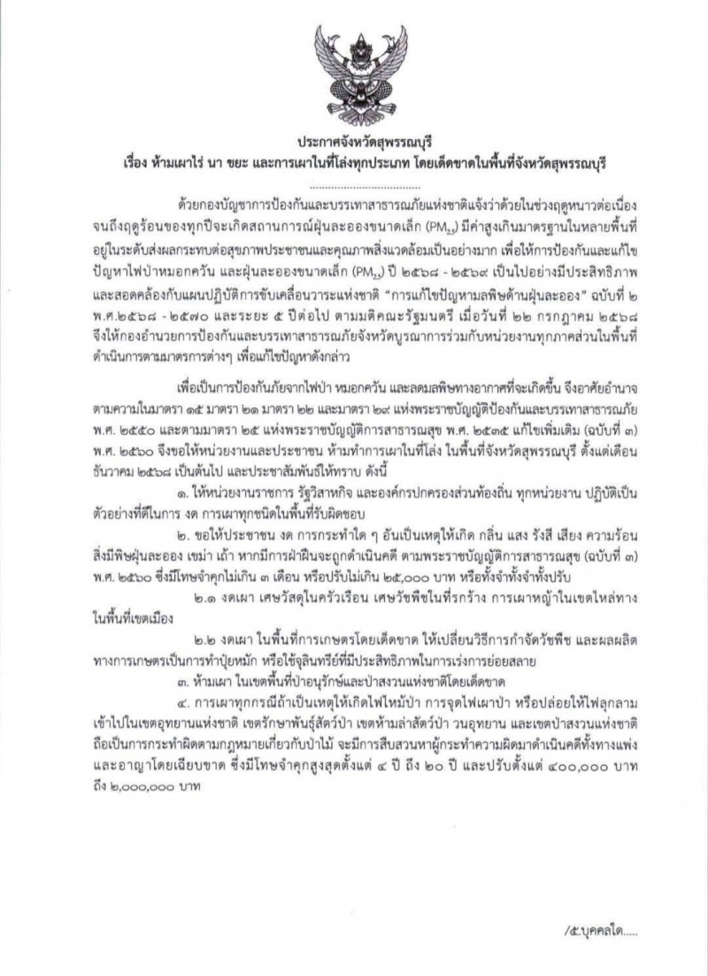 ประกาศห้ามเผา จังหวัดสุพรรณบุรี