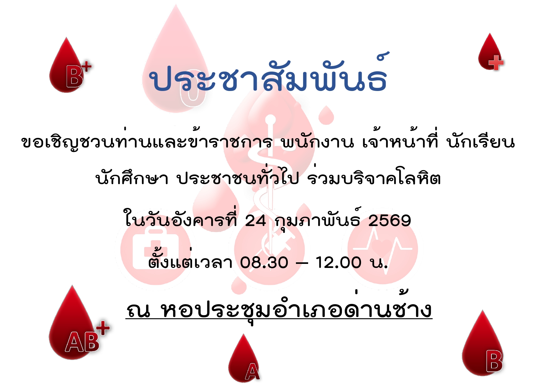 ประชาสัมพันธ์ ขอเชิญร่วมบริจาคโลหิต