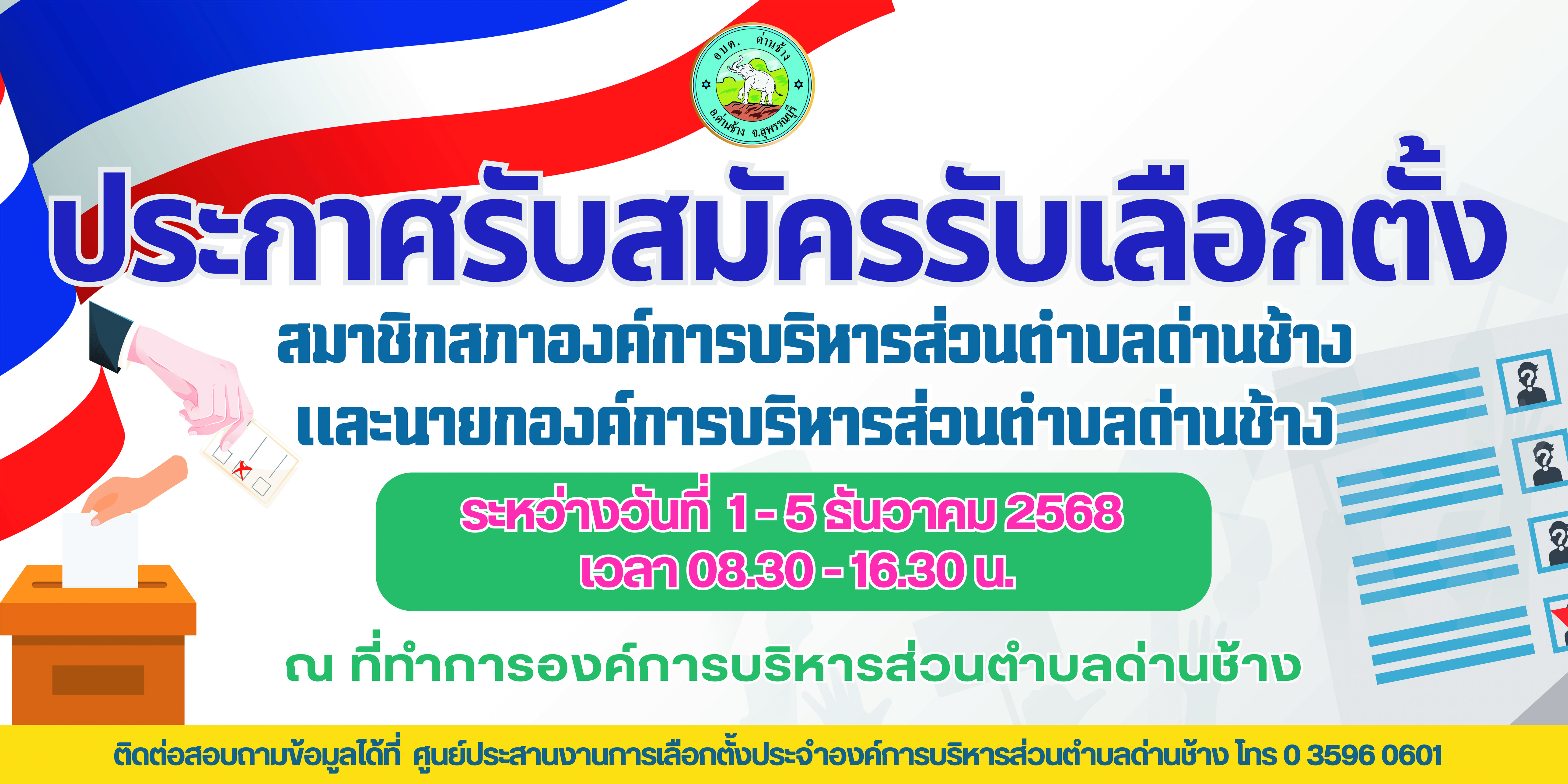 ขอประชาสัมพันธ์ จาก กกต. เรื่อง การรับสมัครรับเลือกตั้งสมาชิกสภาองค์การบริหารส่วนตำบลและนายกองค์การบริหารส่วนตำบล ระหว่างวันที่ 1-5 ธันวาคม 2568 ทั้งนี้ ผู้ที่สนใจสมัครรับเลือกตั้งเป็นสมาชิกสภาองค์